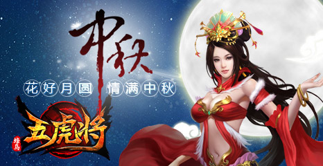 中秋节,月亮圆满,象征团圆,因而又叫“团圆节”。在这团团圆圆的好日子里,《五虎将》也为各位主公准备了温馨团圆的中秋节系列活动。现在,让我们一起边赏月一边玩五虎将吧!